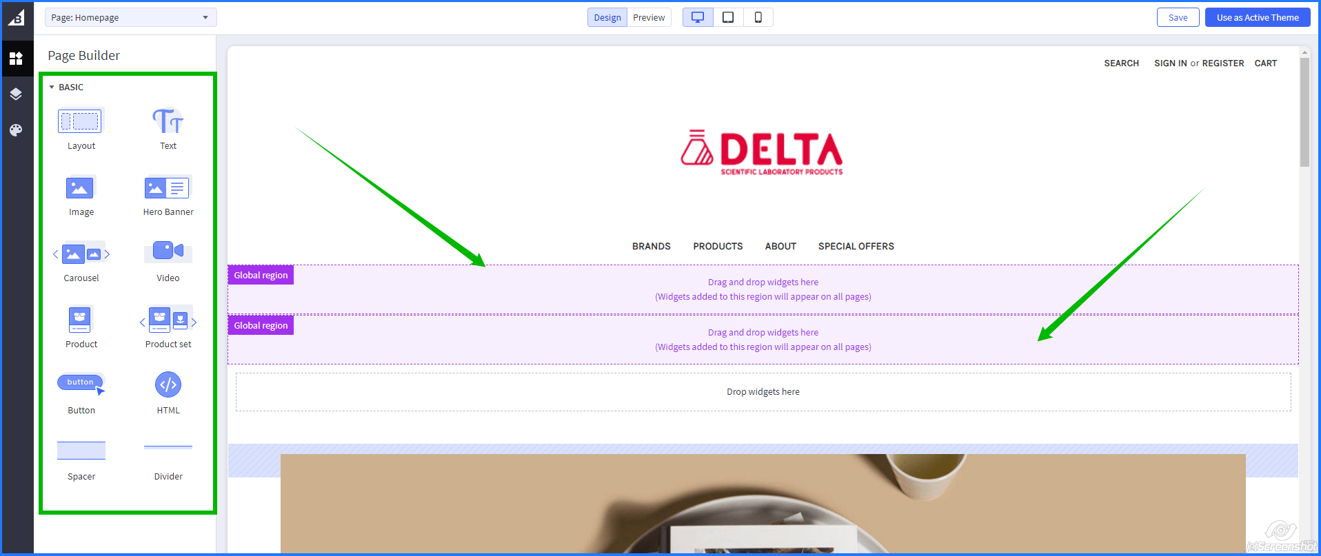Note: Customization options are limited. To customize a section, download the theme folder, add files, and push changes using Stencil CLI.
