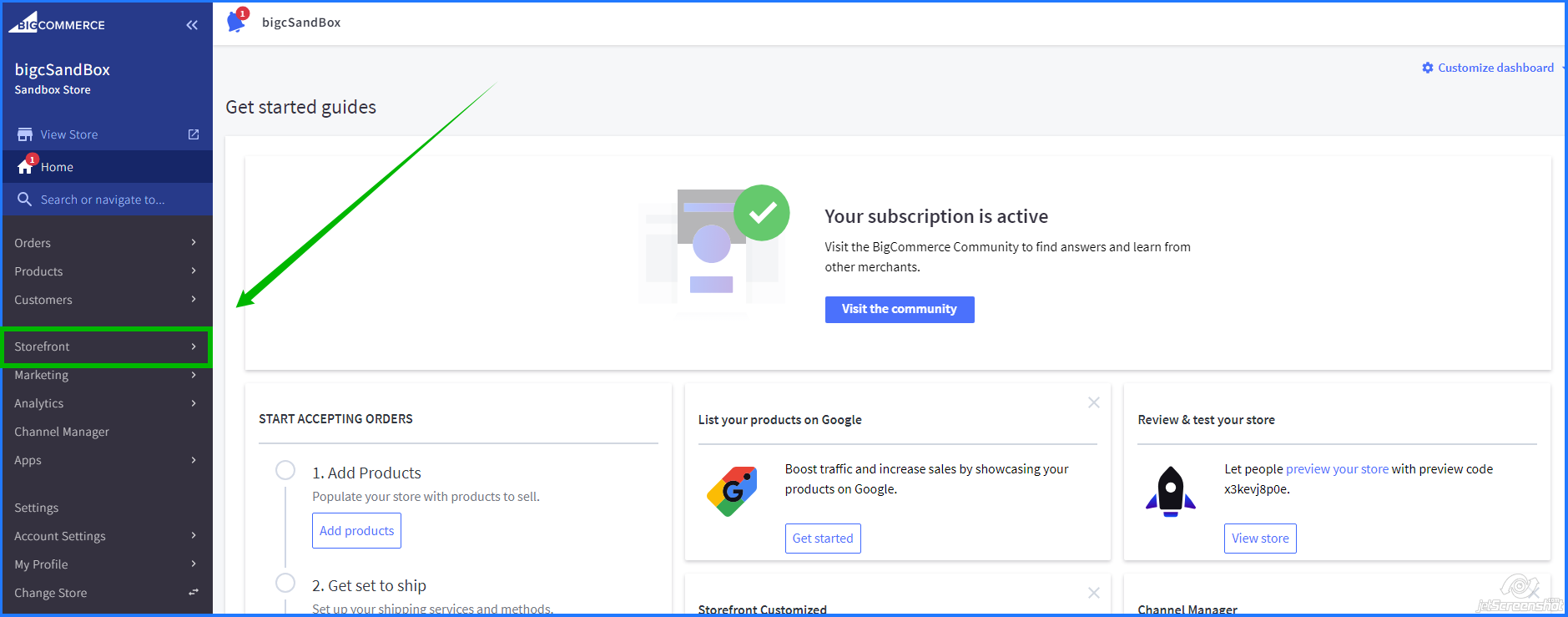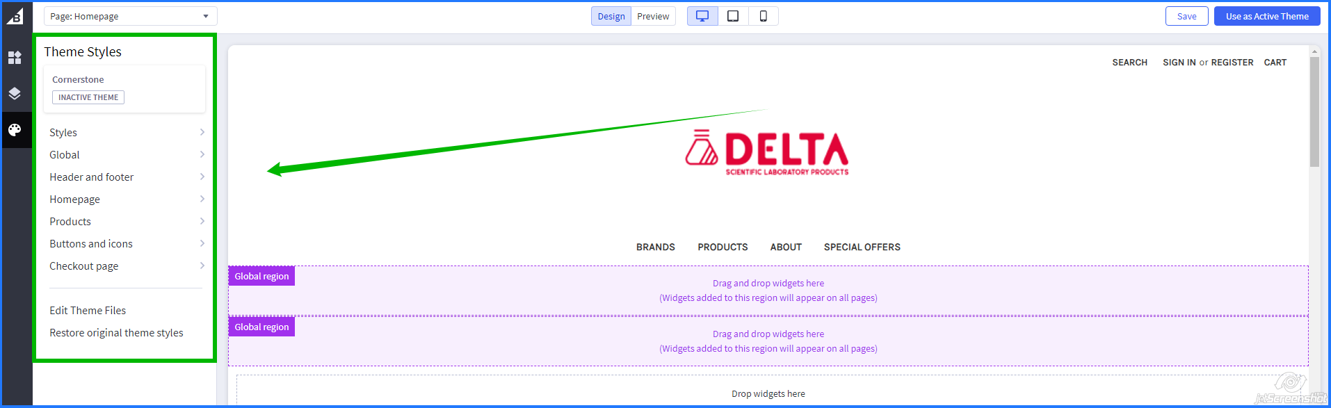 3. Navigate to the “Cornerstone” theme in the Storefront section.