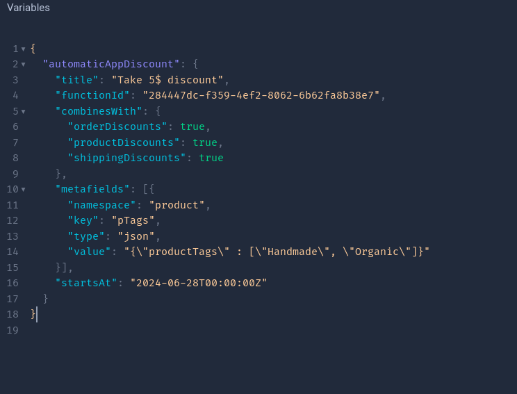 This is the very basic implementation of input variables in functions for the understanding. But one can use it more powerfully. By using input variables we can make more dynamic solutions and applications and can make more use of shopify functions.