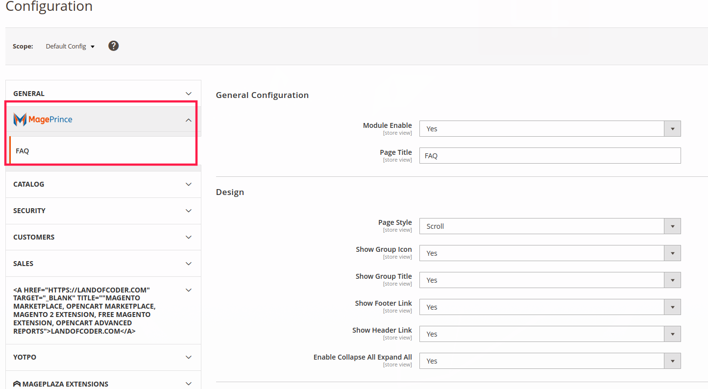 Module’s Flow – After installation, Go to Stores -> Configuration -> Mageprince -> FAQ