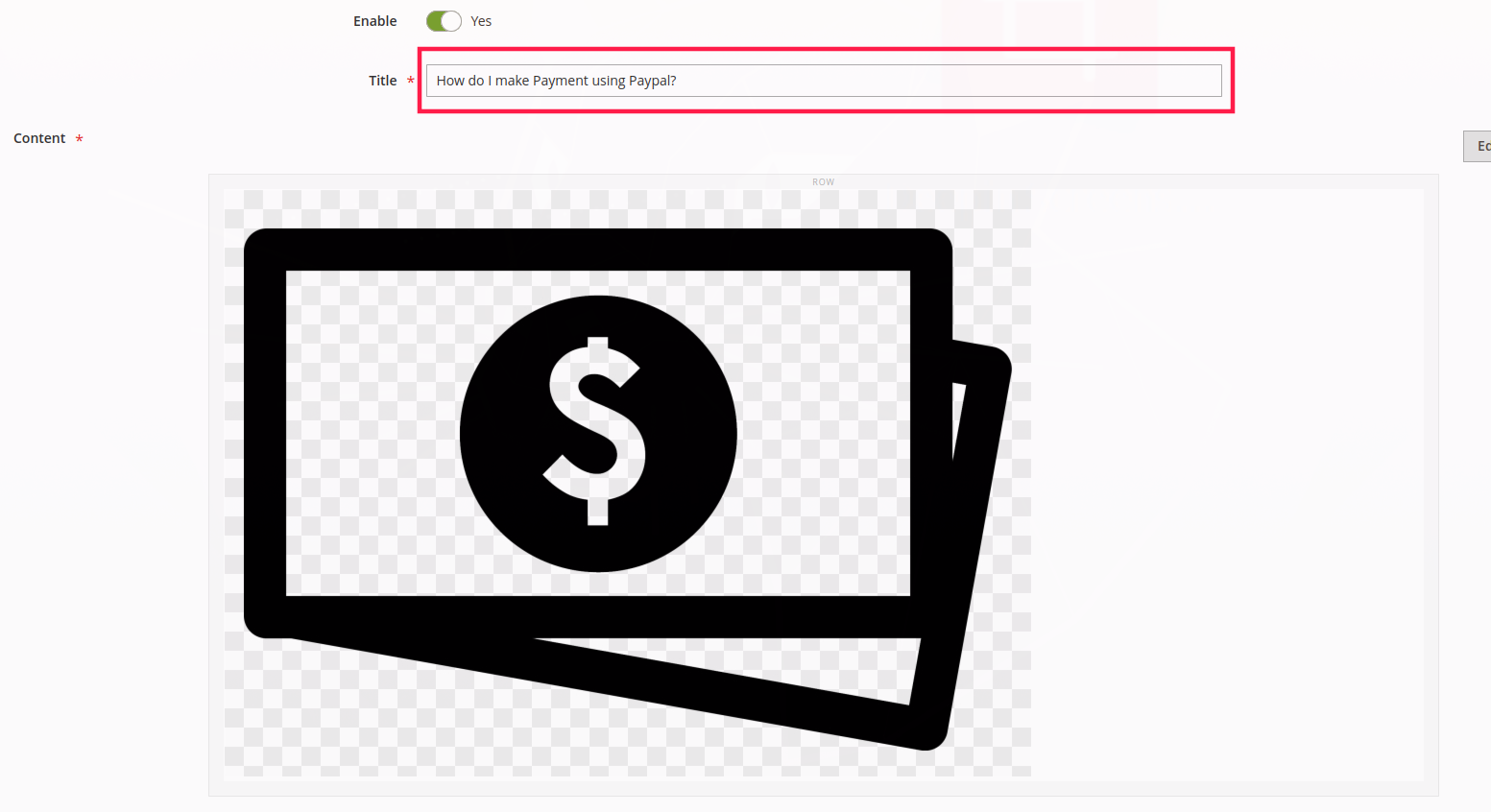 • We can add images, static blocks, widgets in FAQ in FAQ edit page from admin
