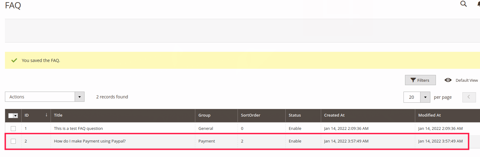 Enable – Choose Yes if you want to Enable FAQGroup section.