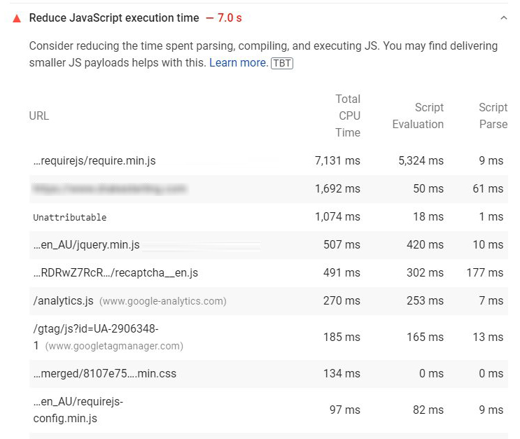 As per Magento standard JavaScript execution time should be less than 2 seconds. Once you reduce the JavaScript execution time it will improve your site’s Total Blocking Time (TBT) score.