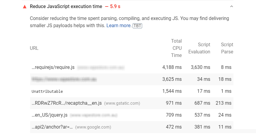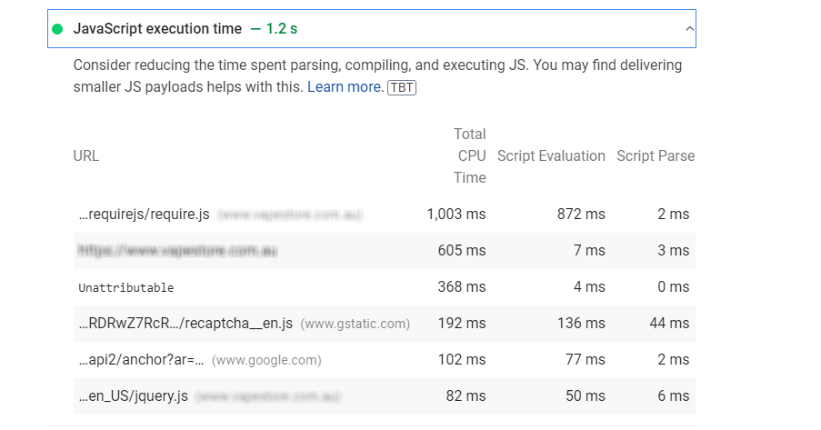 There are some popular tools you can use to identify the JavaScript execution time. One of the recommended tools is Google PageSpeed Insights.
