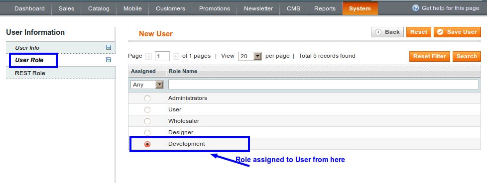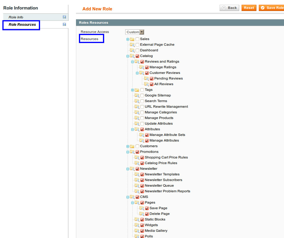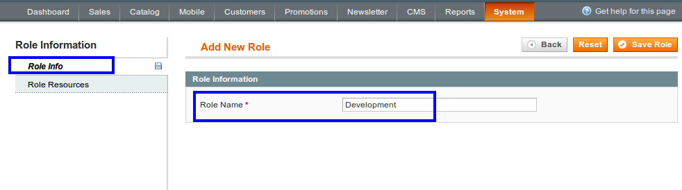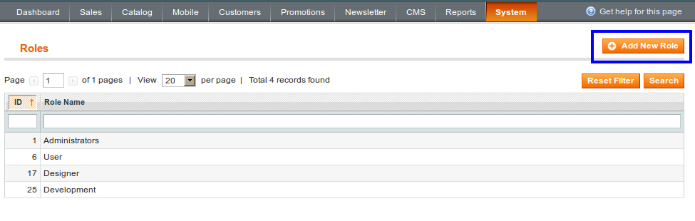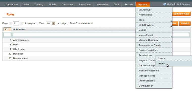 Step 1. Creation of Roles: Go to Admin -> System -> Permissions -> Roles