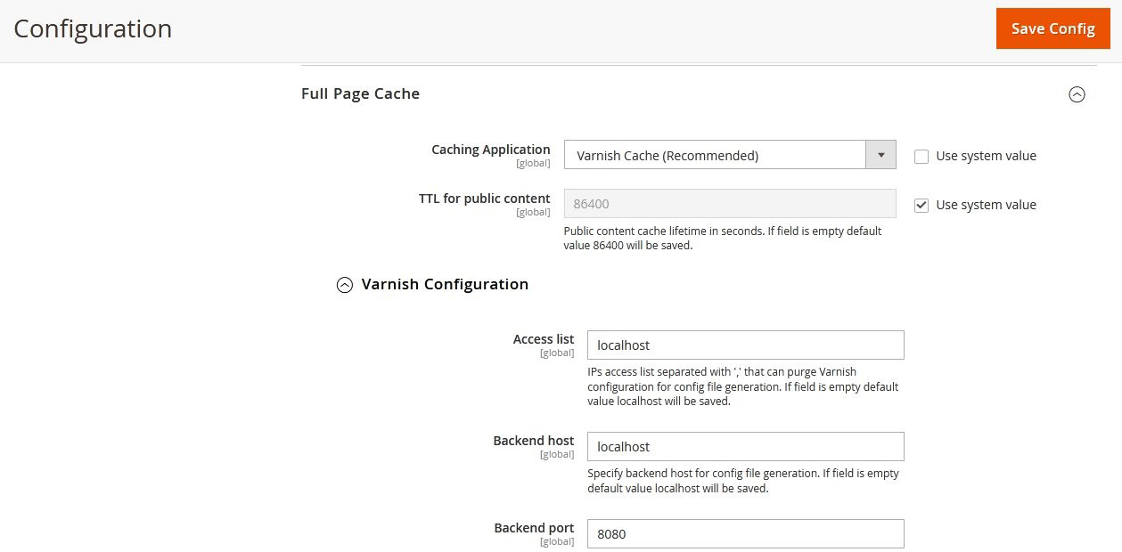 - Expand Varnish Configuration and enter the specific information about your Varnish configuration
