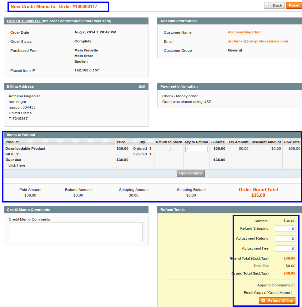 - Adjustment Refund: The value entered here will add to the total amount refunded as an additional refund.