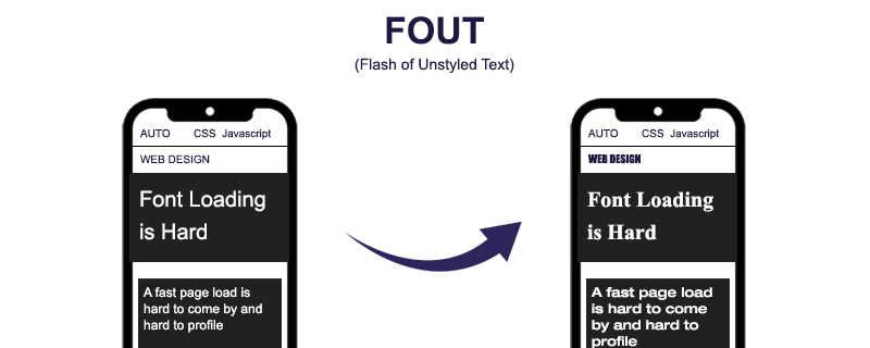 Similarly, until the custom font loads, browsers display a fallback font in the font stack. This results in a flash of unstyled text, often known as FOUT.