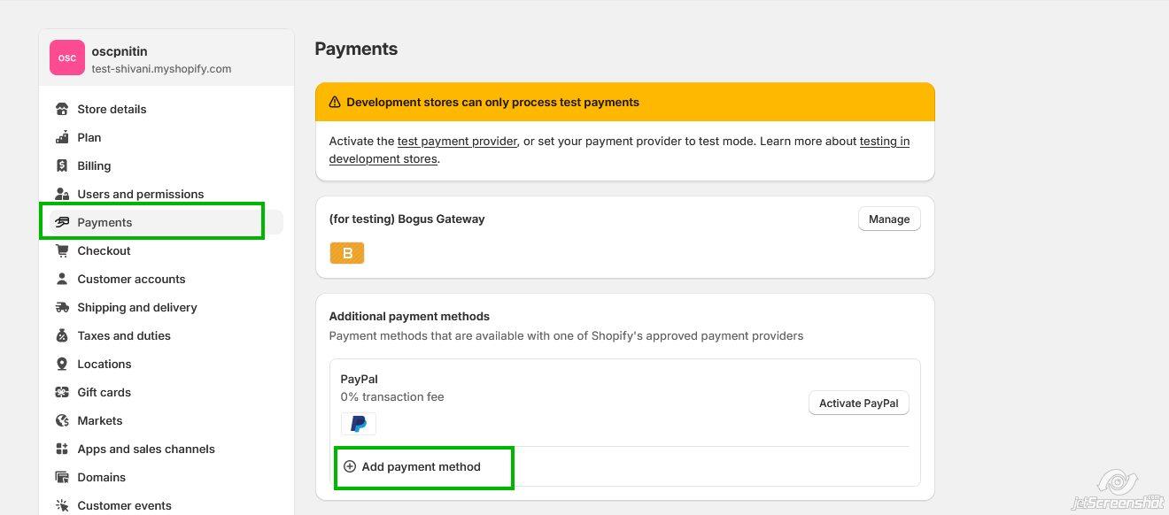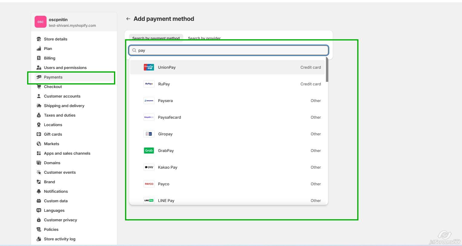 - First you need to login the admin of your store and goto settings and select Payments option.