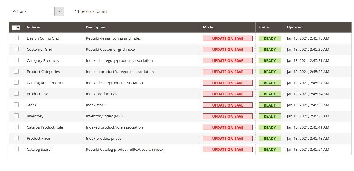 Recommend to set the indexers ‘Update on Schedule’ rather then update on save as index starts running every time you save a product, category or attribute if its set to index on save.