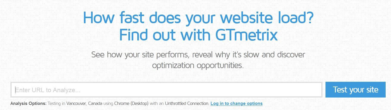 GTmetrix is a simple online tool that can be used to test website load time. You can enter your site url and click on Test your site, it will analyse the site and show you report. GTmetrix offers details on which aspects your site is taking more time to load and provides a detailed report with the recommendation. By referring to the recommendation report you can work out and apply fixes.