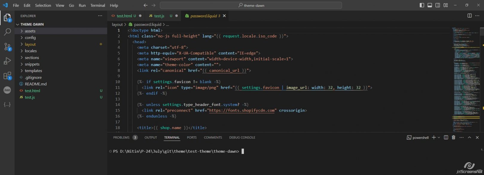 To follow the above points of using git in shopify, after this you can perform changes and save in visual studio code editor and repeat step 7 to step 12.