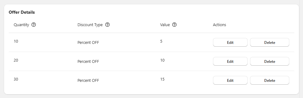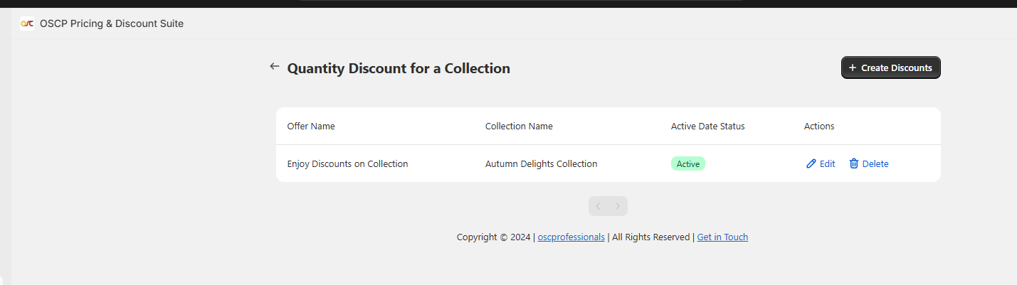 8. Then it will redirect to the manage list of Quantity Discount to Collection Here you can check and edit the created offers.