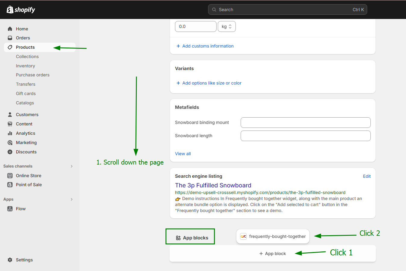 5. Select specific products in that page below display the Frequently Bought Together Admin Block.