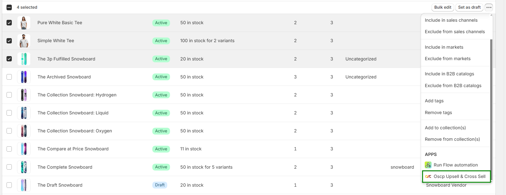 4. Select “More Actions” and Click on the upsell cross-sell app.