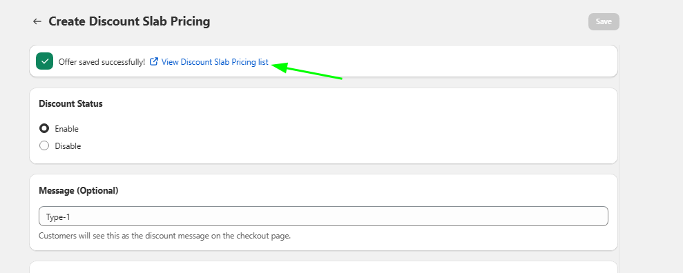 9. After saving, you can click on “View Discount Slab Pricing List” to view the offer in the listing page.
