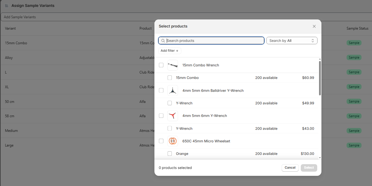 2. Click on the “Add Sample Variant” text field, where you can select the variants to which the offer will be applied.