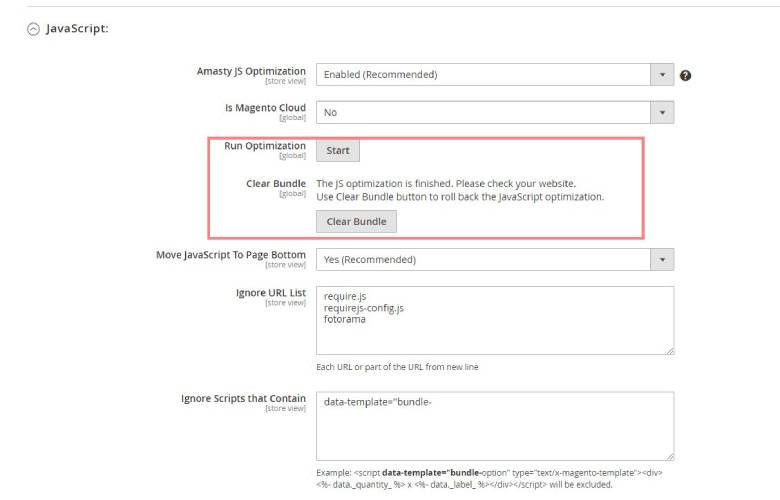 ii)`Backend > store > Configuration > Amasty extension > Google page speed optimizer > settings > Javascript setting