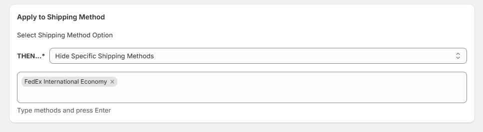 - After pressing Enter, the selected shipping method will appear inside the text field.