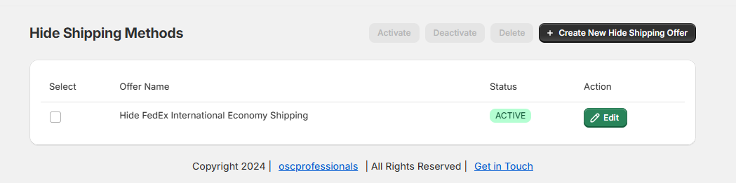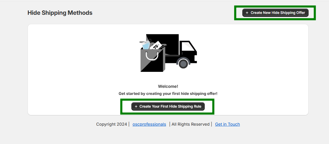 - Click “Create New Hide Shipping Offer” on the dashboard.