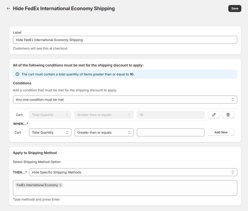 - Add Conditions to Apply the Shipping Discount: