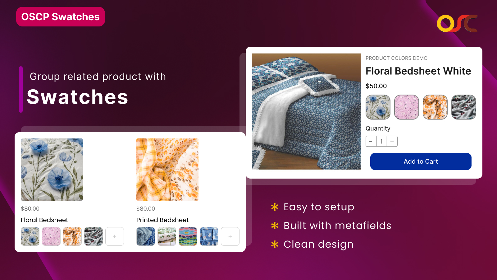 OSCP Swatches: Easily create and manage product swatches using Shopify metaobjects and metafields.
