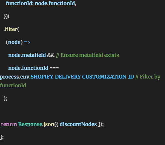 This function fetches shipping/payment discount rules using GraphQL and prepares them for front-end rendering.