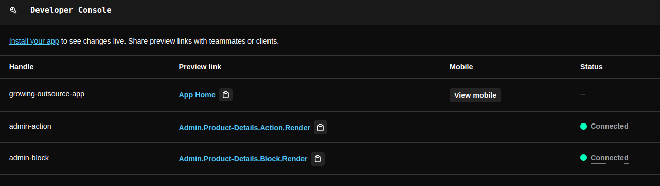 By streamlining navigation within Shopify Admin, you can significantly enhance the merchant’s experience. With a single button click, merchants can quickly access the necessary actions without having to navigate through multiple menus. This approach of linking Admin Block Extensions with Admin Action Extensions simplifies workflows, reduces the need for additional navigation, and improves overall functionality within the app. Customizing and optimizing the Shopify Admin interface in this way helps create a more efficient, user-friendly environment for merchants.
