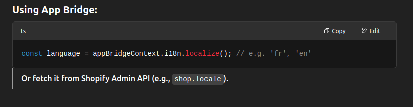 Here use the Shopify .appbridge context or browser setting to detect the user’s language.