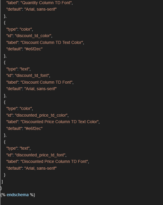• The Shopify Schema helps merchants modify all table components including headers and formatting elements and border designs.