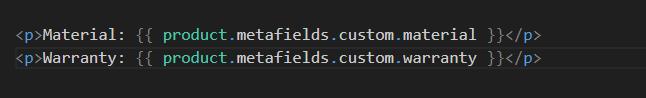 Metafields applied to product variations enable users to include custom information for size charts and material specifications.
