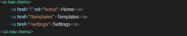Displays a navigation menu with links to Home, Templates, and Settings.