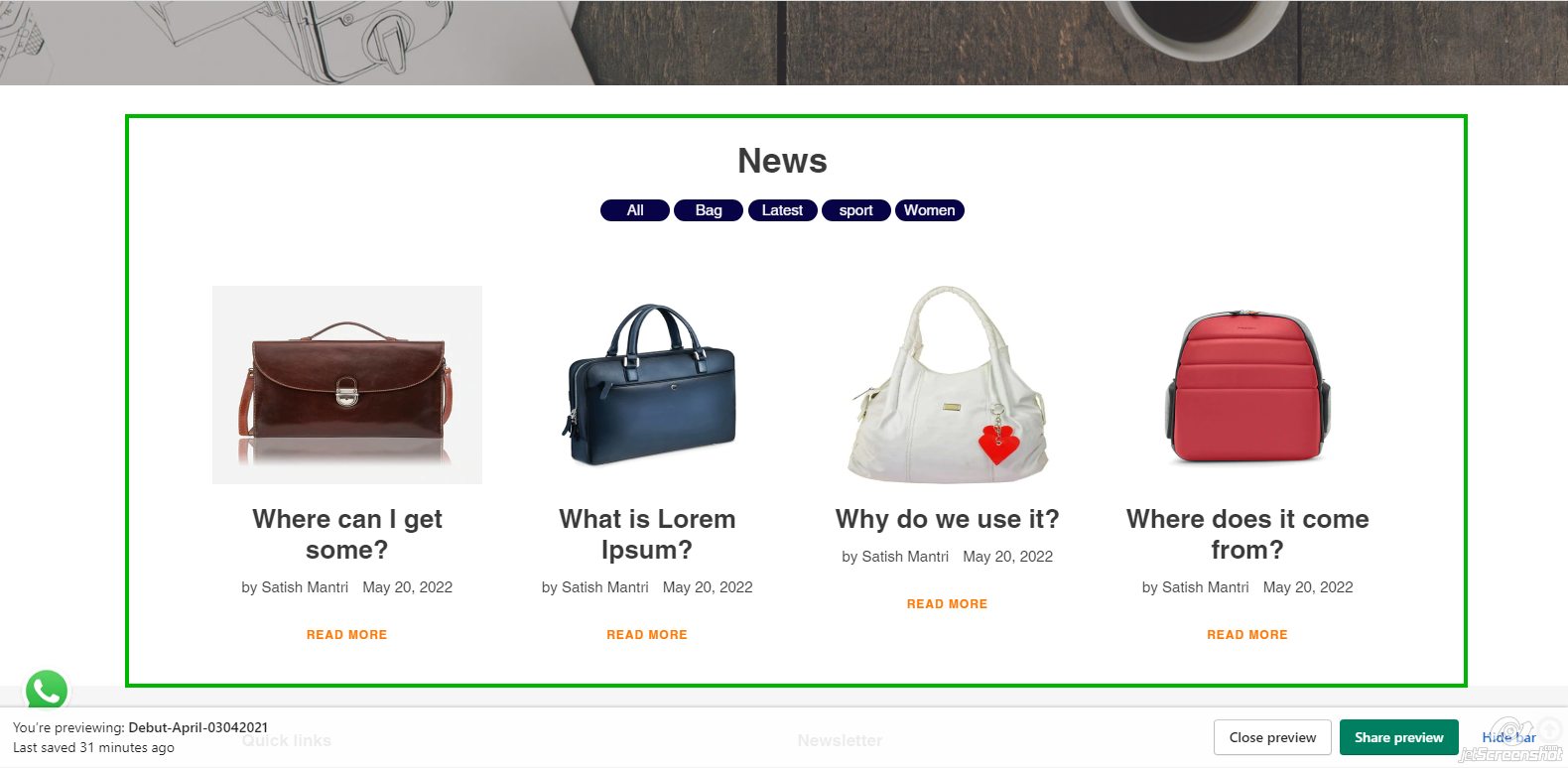 This section filters blog posts based on tags that have been assigned to the blog. There are different layouts for this section.