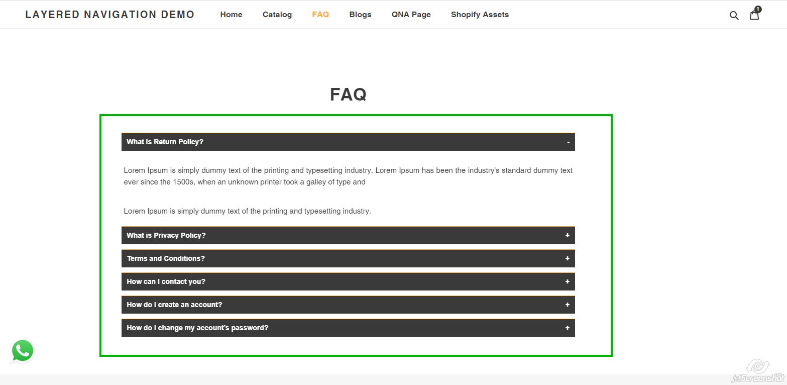 Add an accordion to the Frequently Asked Questions page so it looks attractive with click-through effects.