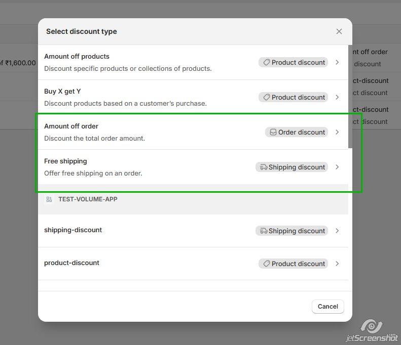 - Choose Amount off order or Free shipping, depending on your preference.