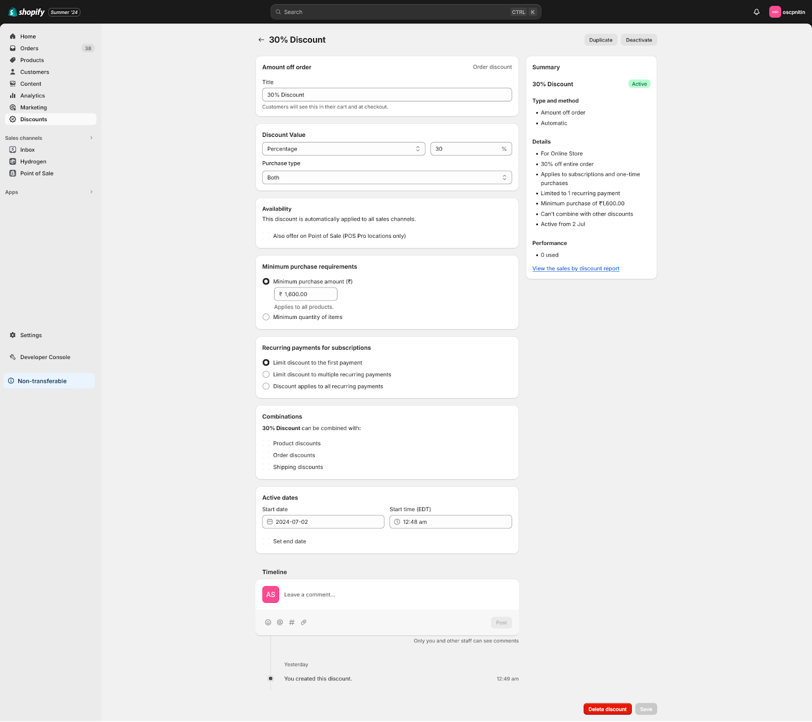 - Click Create Discount.