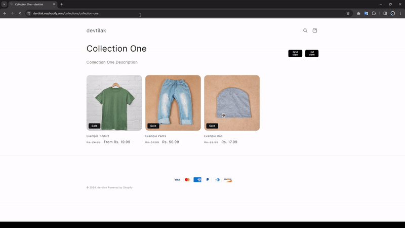 This feature allows users to switch between different product display formats on your Shopify website. Instead of limiting the view to a grid format, users can also choose to see products in a list format. This functionality works seamlessly on both desktop and mobile devices, ensuring a smooth experience for all users.