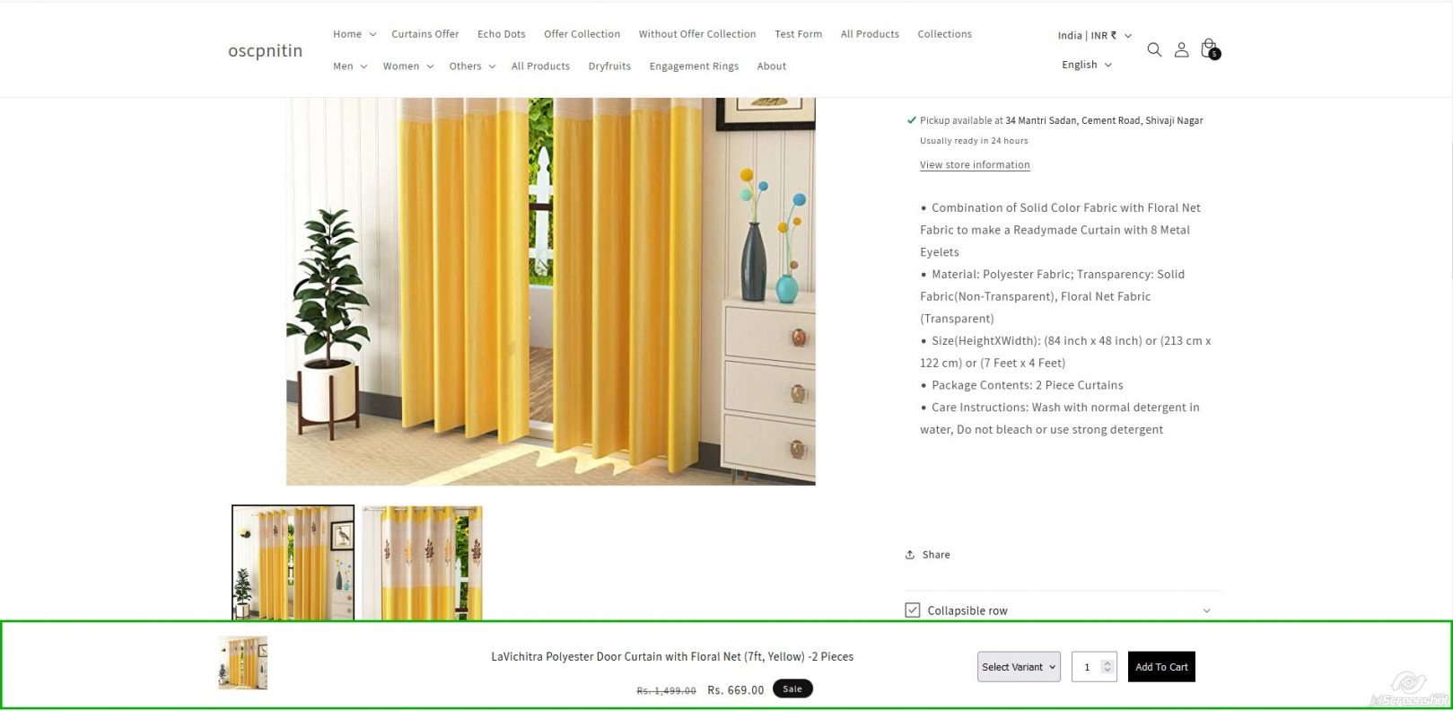 A sticky “Add to Cart” section keeps the main call-to-action accessible, especially on long product pages. This sticky cart functionality enhances the user experience of eCommerce, increases conversions, and streamlines the checkout experience.