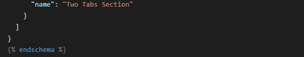 Navigate to Sections > Add a new file two-tabs-section.liquid.