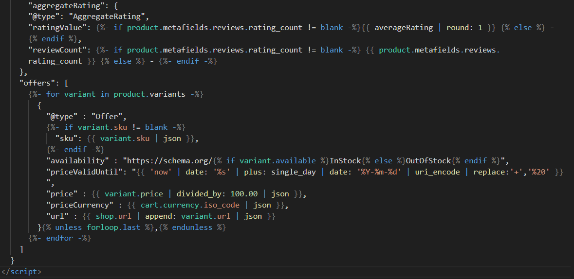 Paste the JSON-LD code straight into your theme files ( product.liquid etc). Customize as needed.